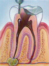 Once Caries reach to the pulp, it Spreads beyond the root area & into the bone tissues, due to which tooth becomes dead. At this stage we can save tooth by doing RCT.