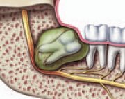 More serious problem may occur if the sac surrounding the impacted tooth becomes filled woth fluid and enlarges to form a cyst. If grows it may hallow out the jaw and permanantly damage adjacent tooth & nerves, develop from its walls & more serious surgical procedure may required to remove it.